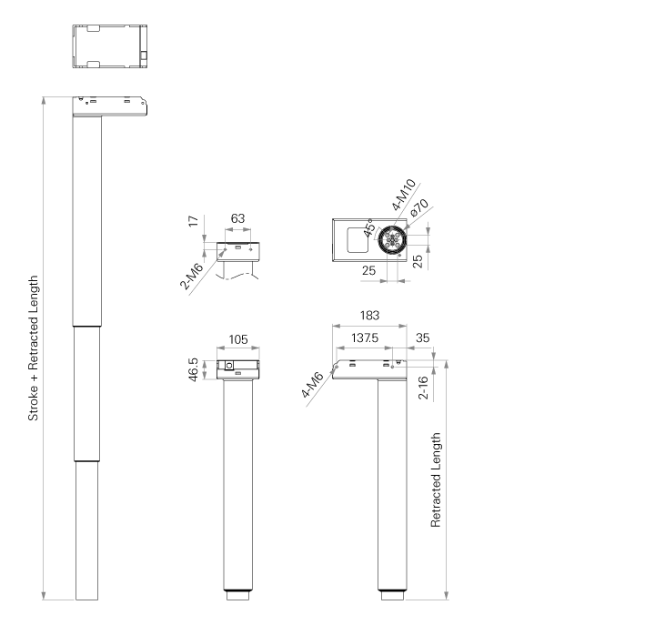 An electric lifting column consists of an electric actuator integrated with a telescopic tube. The actuator provides the push and pull, while the telescopic tube provides the guidance. TiMOTION lifting column series offers reliable vertical movement and allows height adjustment of many industrial, medical, workplace and comfort equipment.